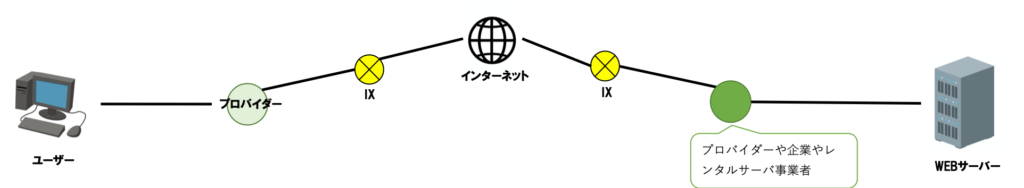 そしてWEBブラウザを操作してコンテンツを見ている時には、そのコンテンツを提供しているサーバもIXからたどる事ができどこかにあります。